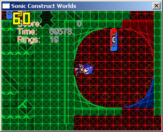 As shown at SAGE 2010, Sonic Construct Worlds is now effectively its own beast, no longer a straight port of the MMF version. And it comes with two levels - the basic test level (which is highly incomplete), and the Clock Tower, a Castlevania-based level that has Sonic run in, and run out, while dodging enemies and Death along the way. The 'custom edition' has gone through multiple iterations, with this being the best so far.
